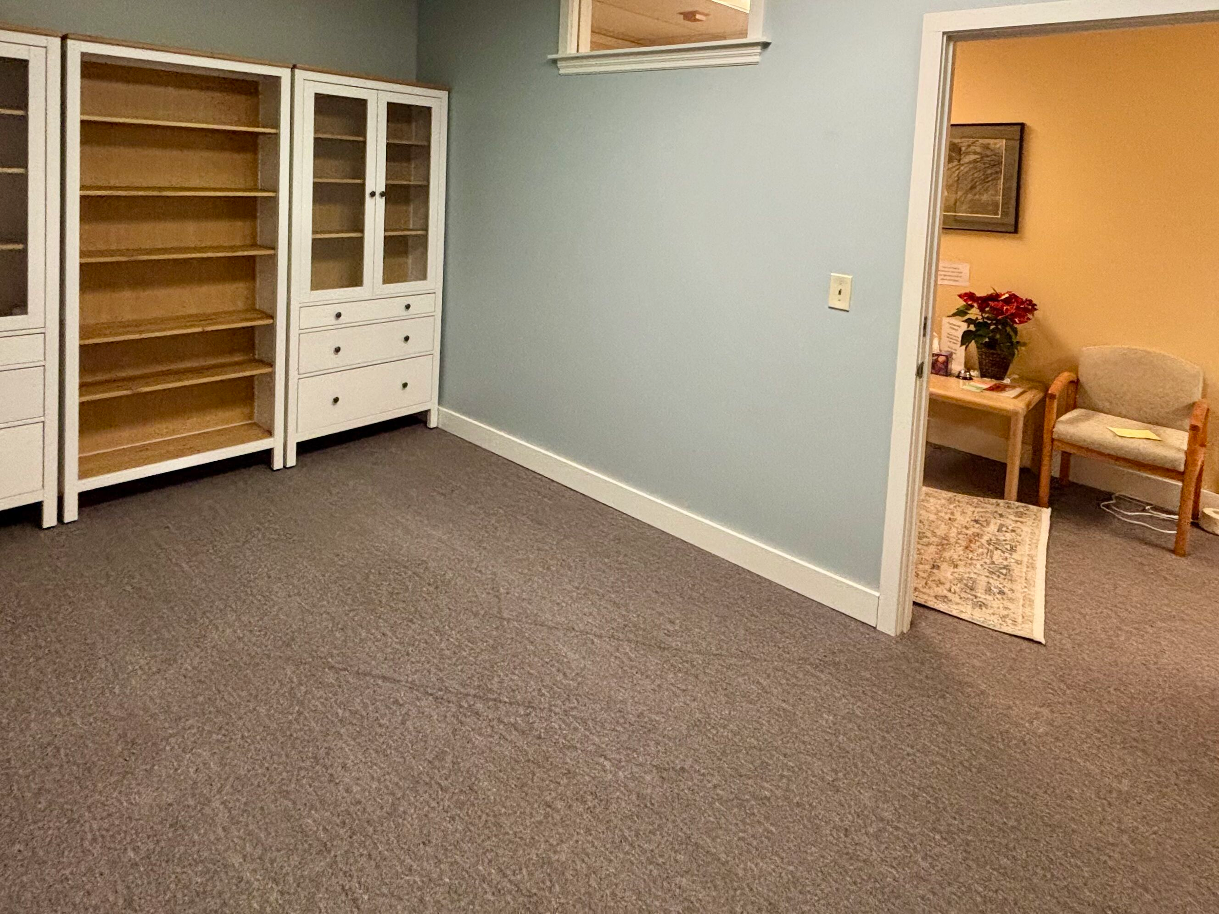 This interior office features a convenient waiting room right outside the door for your clients. Available March 12th.